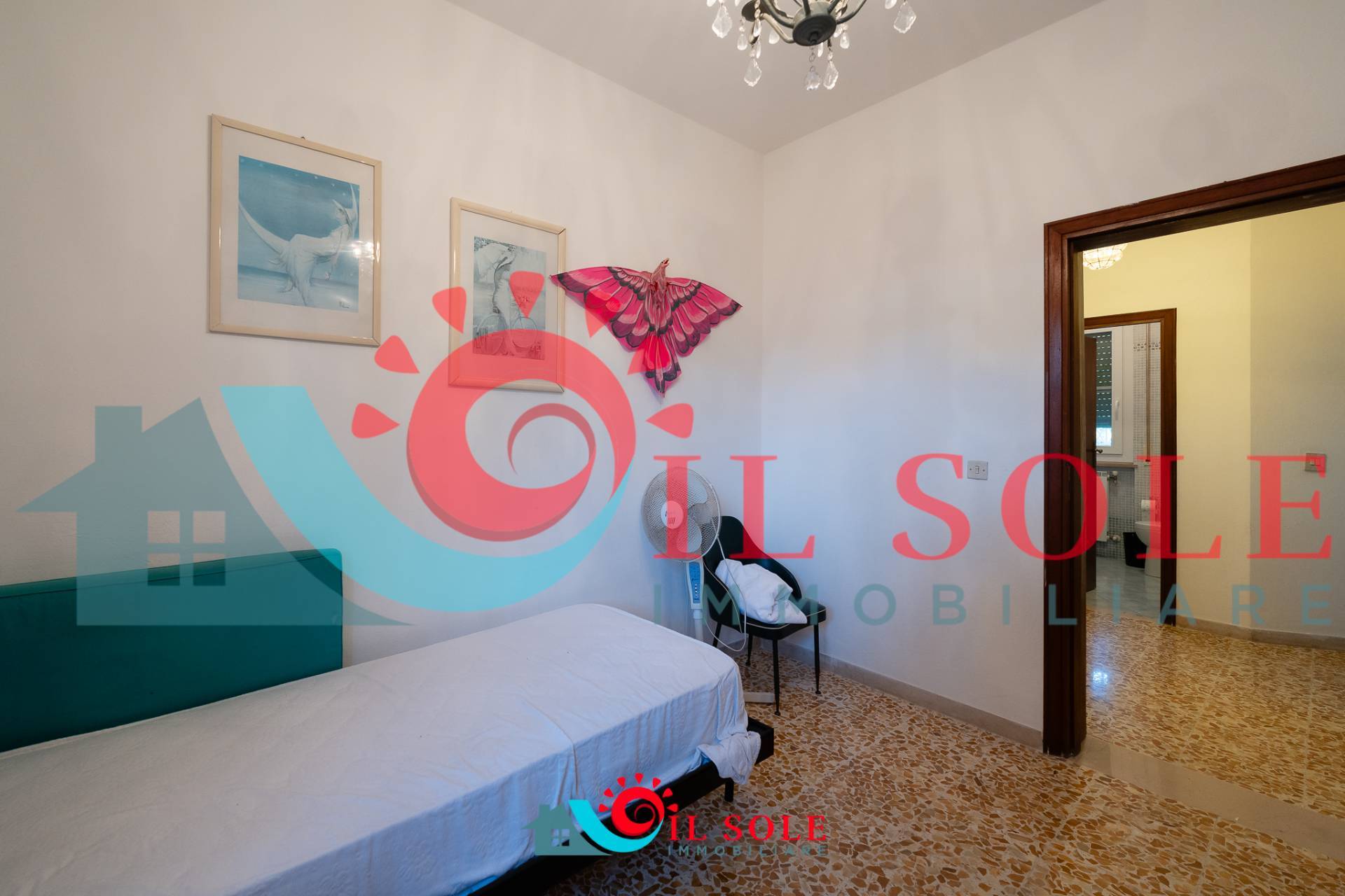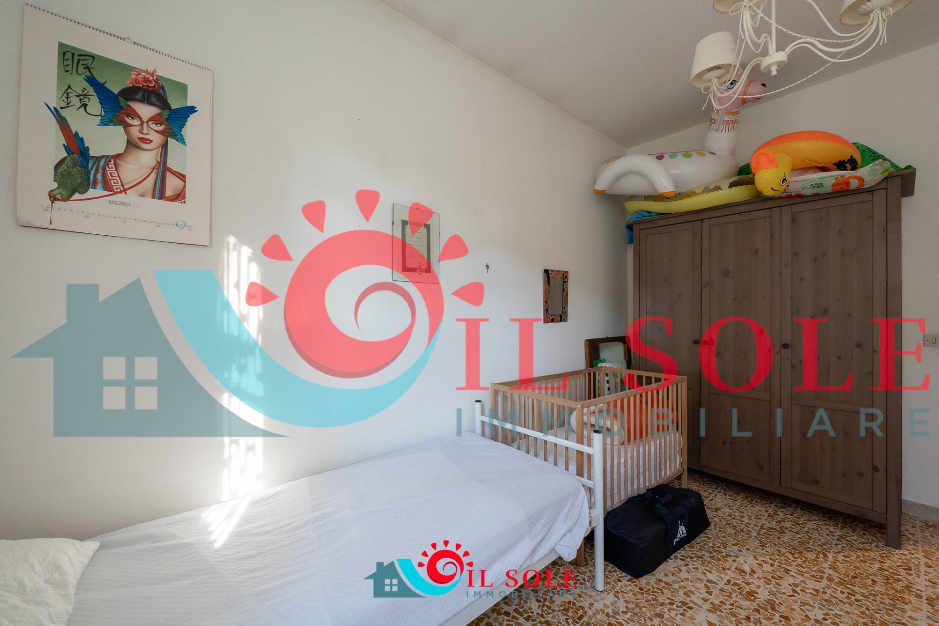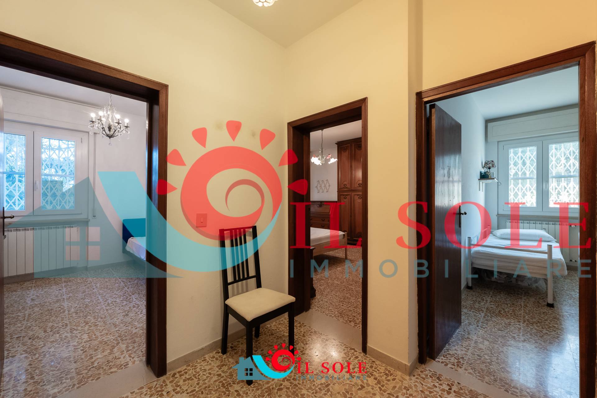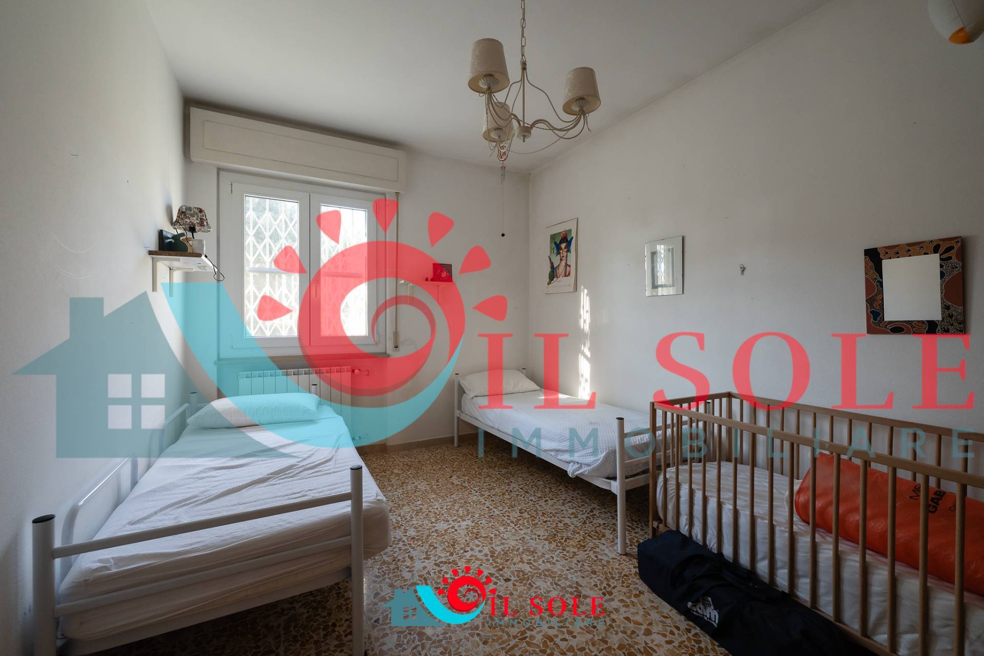 tre camere di cui due matrimoniali ed una cameretta e bagno con box doccia.
