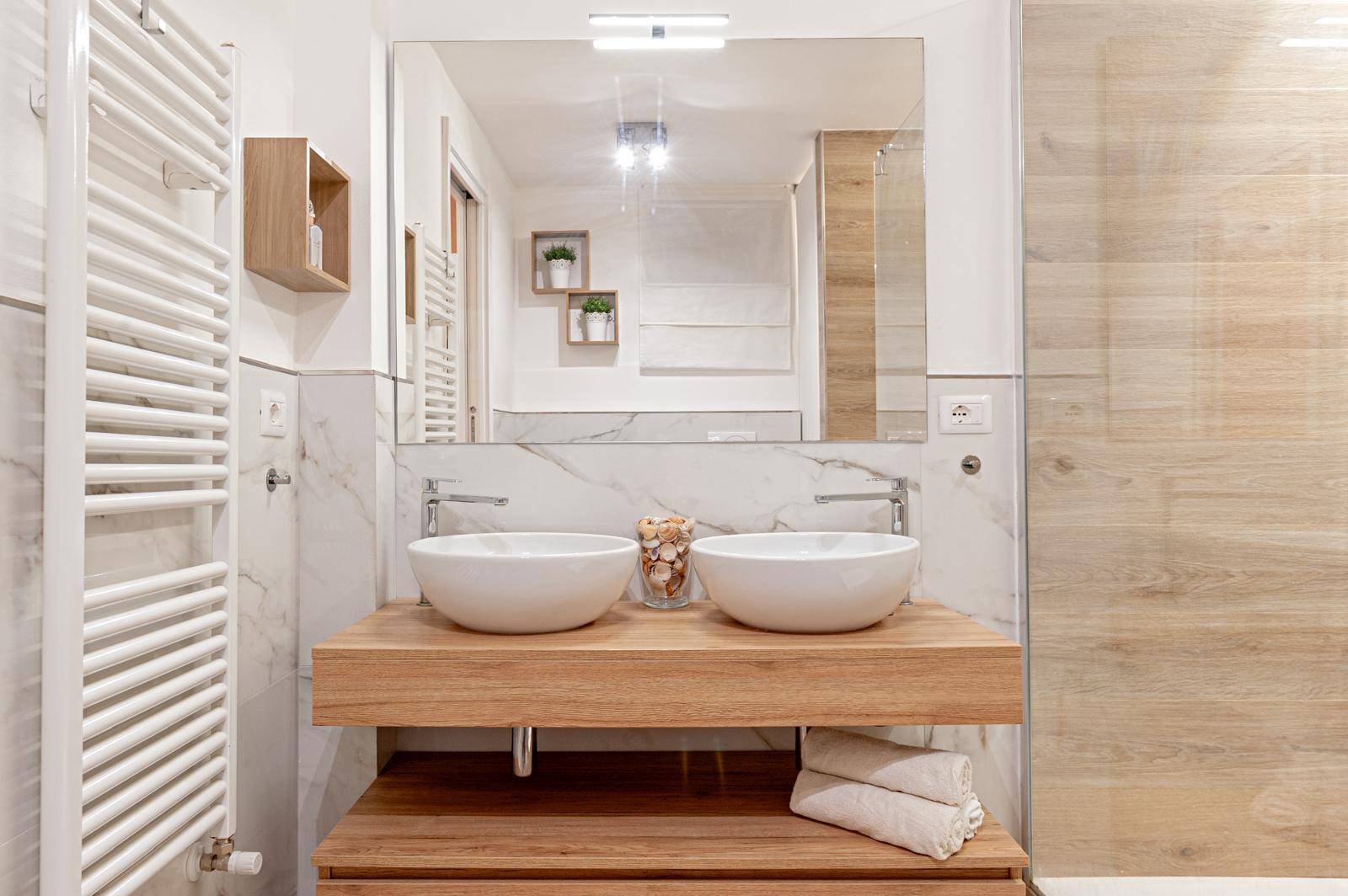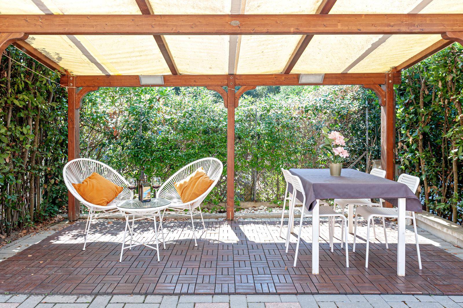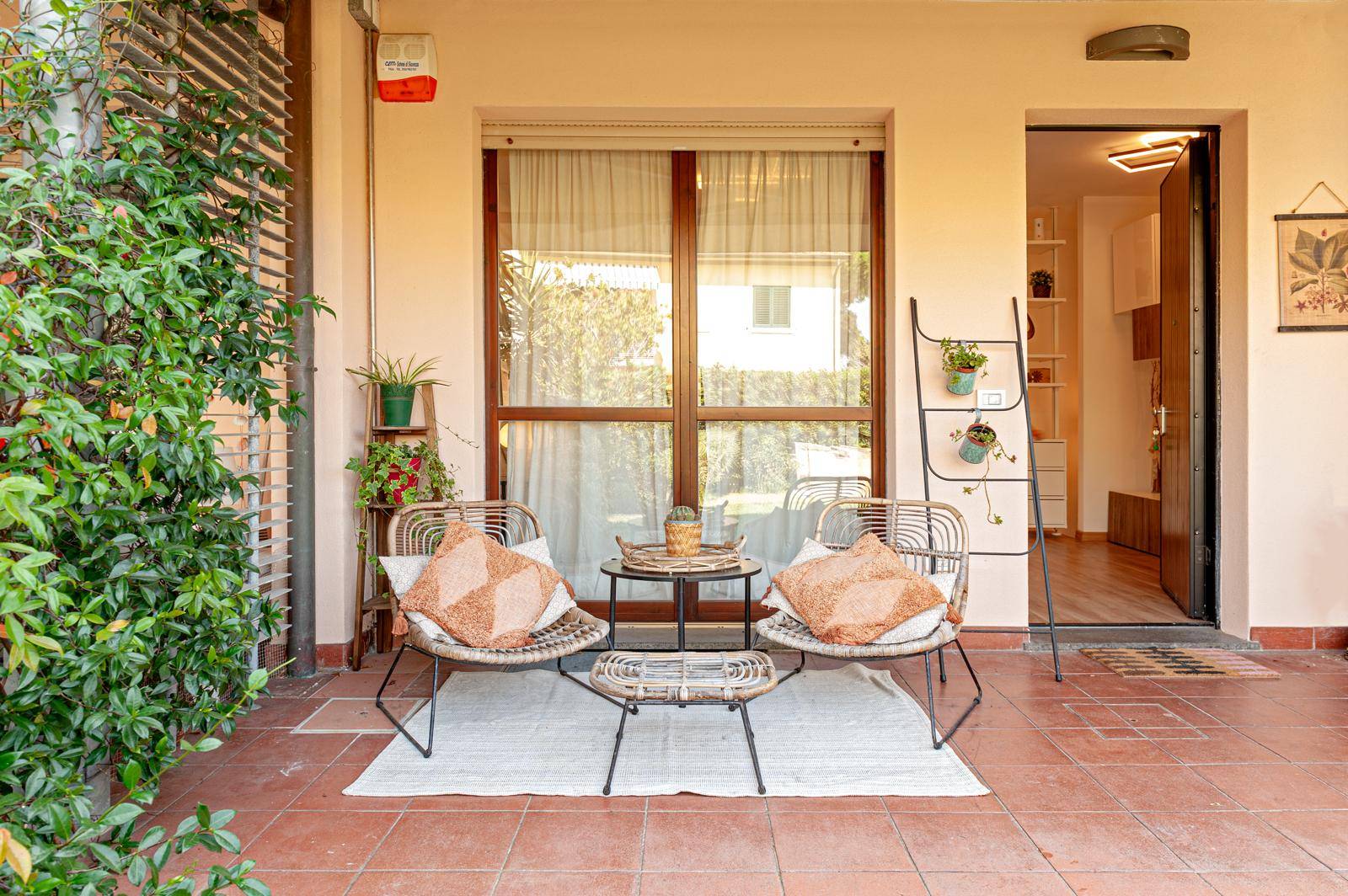 Appartamento in Affitto a Tirrenia (Pi): Vicinissimo al mare, suggeriamo bellissima soluzione con finiture di pregio , posta su due livelli: al primo troviamo ampio soggiorno , cucina abitabile con accesso diretto ai giardini e bagno con doccia; al piano inferiore due camere matrimoniali e bagno con doccia